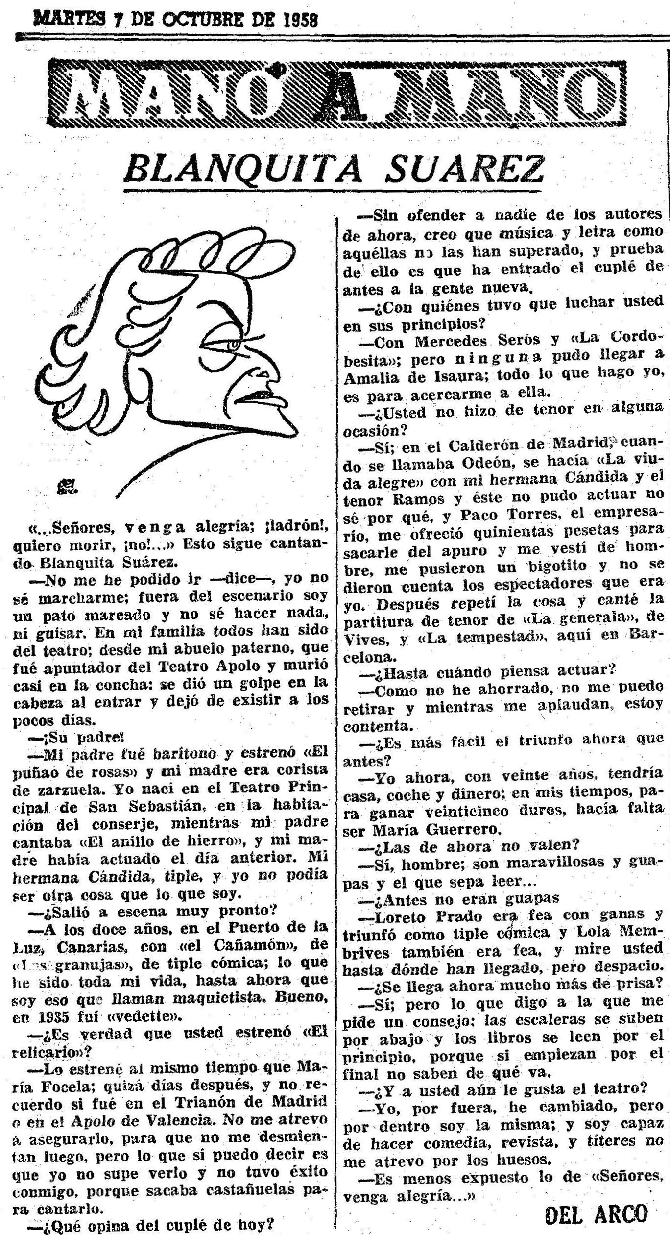 Entrevista a Blanquita Suárez a La Vanguardia el 7 d’octubre de 1958