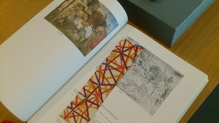 Ensenyant les il·lustracions de La barre d’appui de Paul Éluard en el marc de Arts Libris 2015