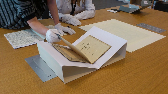 En aquestes dues sessions es van poder veure amb detall els tres originals i es va parlar de la dificultat d’exposar llibres d’artista. Vam tractar diverses qüestions relacionades amb l’edició dels llibres d’artista i la transcendència de la col·laboració de l’equip i de la tria de cadascun dels aspectes: la mida de l’objecte, el paper, la tipografia, les cadències de les il·lustracions.