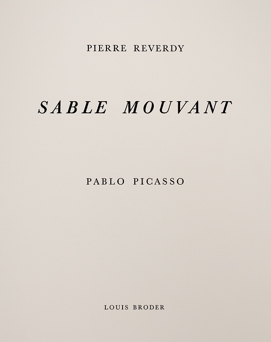 El darrer llibre presentat, Sable mouvant, va ser escrit l’any 1959 i és l’últim poema de Pierre Reverdy. René Char li va proposar de participar en una antologia de dotze poetes que havia d’il·lustrar Jacques Villon. El projecte no es va dur a terme, i el text de Reverdy no es va arribar a publicar en vida del poeta, mort l’any 1960. Picasso va accedir a col·laborar en l’edició a manera d’homenatge pòstum a l’amic. Es tracta d’un llibre de gran format (50 x 40 cm) amb deu aiguatintes també de gran format de Picasso.