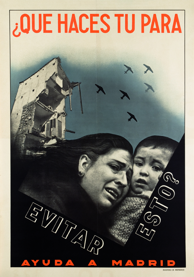 Esquerra | Fotografia presa a Barcelona EL 22 de novembre de 1936, d’autor no identificat, ANC_Arxiu Nacional de Catalunya, Sant Cugat del Vallès. Dreta | Fotomuntatge ¿Qué haces tú para evitar esto?, Mariano Rawicz, 1937. Col·lecció Postermil, Barcelona.