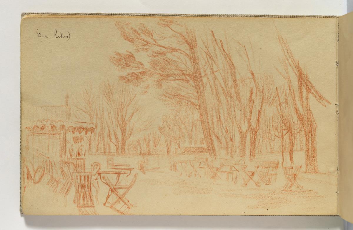 Cantina del Retiro Cantina del Retiro Cantina del Retiro Autor Pablo Picasso Títol Cantina del Retiro Lloc d'execució Madrid Tècnica Sanguina sobre paper Dimensions 12 cm x 19.5 cm Número de registre MPB 111.436 Necessites una reproducció d'aquesta obra? Tota documentació és per definició un treball en curs. Si tens informació addicional sobre aquest registre o hi detectes cap error, envia'ns els teus comentaris. Col·leccions Dibuix Exposicions 2020-2021- "Picasso. Els Quaderns". Museu Picasso, Barcelona, Barcelona (Espanya) Obres de La col·lecció relacionades Enllaç cap a obra Àlbum de Madrid, 1898 Àlbum de Madrid, 1898 1898 Exposicions relacionades Enllaç cap a exposició Picasso. Els Quaderns dv., 18/12/2020 - 12:00 - dg., 04/04/2021 - 12:00 Picasso. Els Quaderns