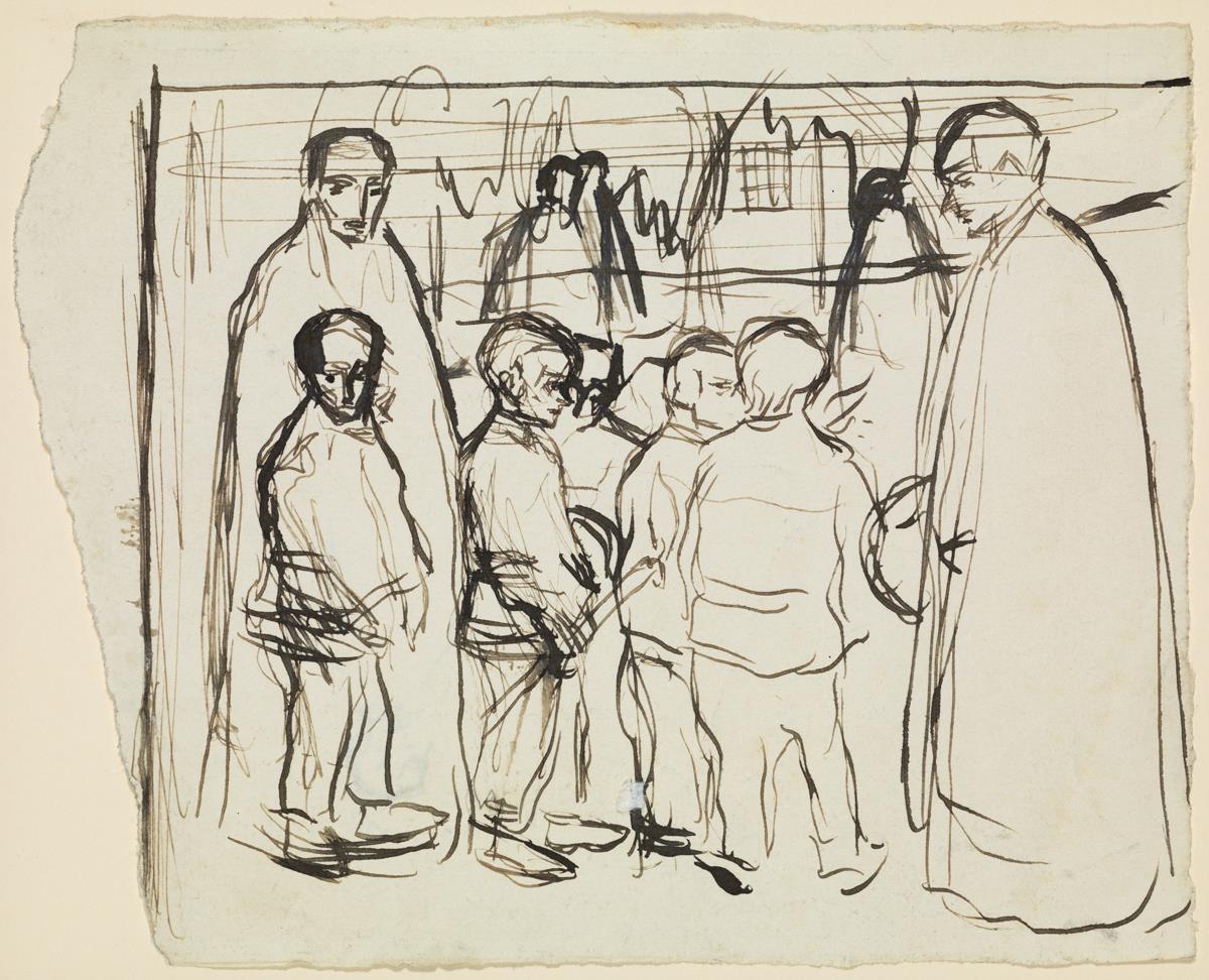 Enllaç cap a obra Capellà amb nens, i un personatge masculí que els amonesta Capellà amb nens, i un personatge masculí que els amonesta 1900