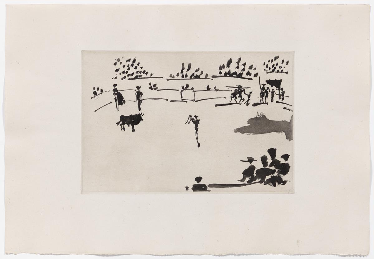 Aiguatinta al sucre amb mossegada a la mà sobre coure; estampat sobre paper de Xina
