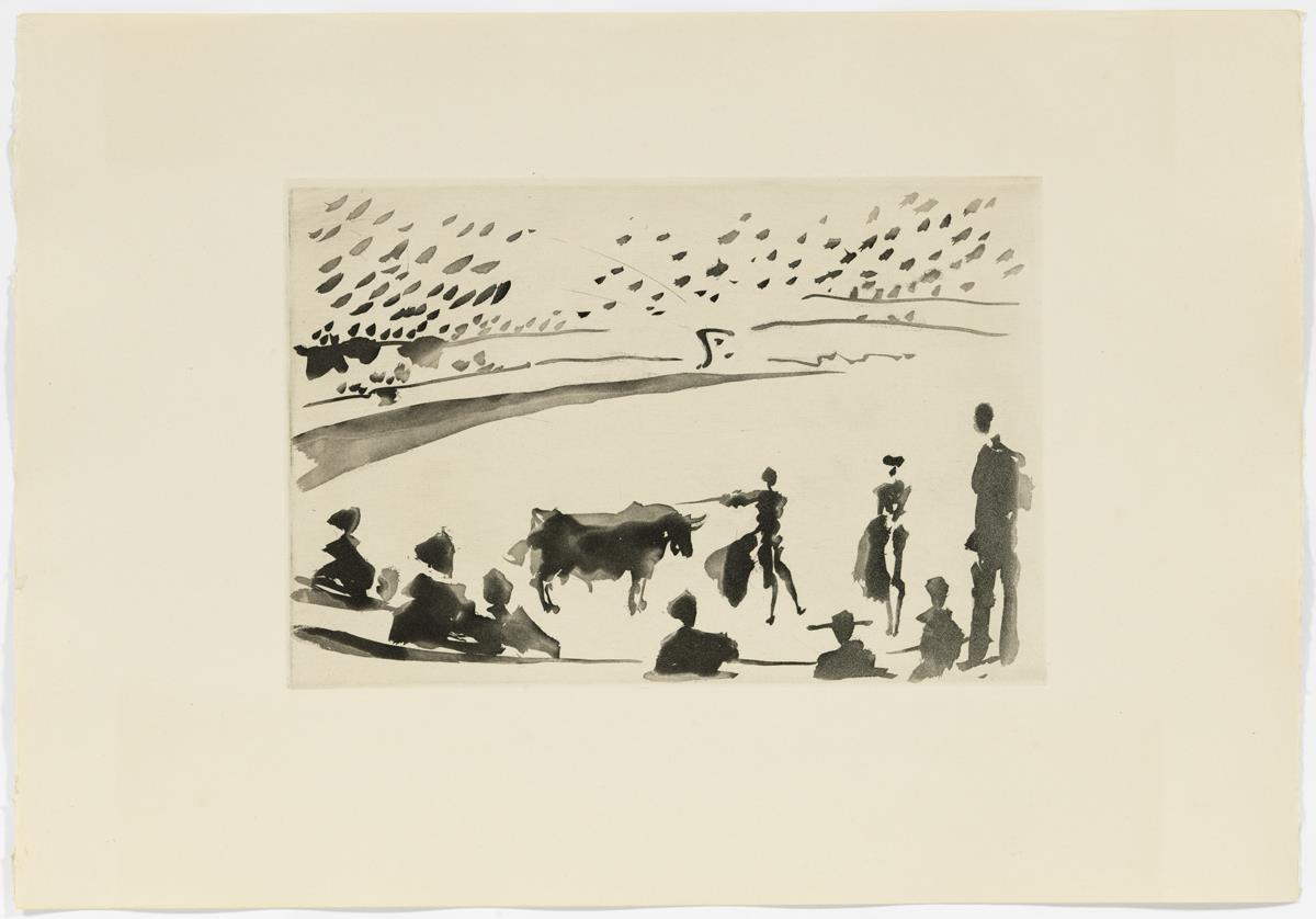 Aiguatinta al sucre amb mossegada a la mà sobre coure; estampat sobre paper japó antic