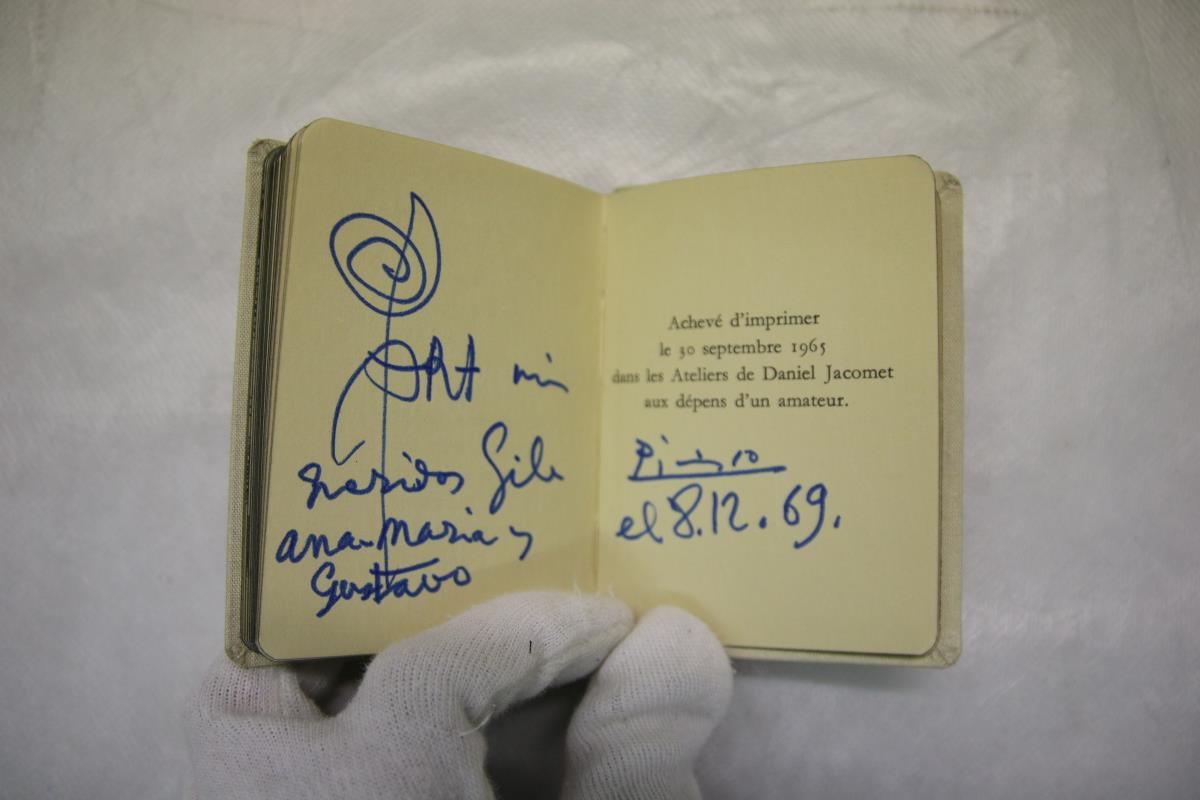 Dedicatòria Dedicatòria 1969 Dedicatòria Autor Pablo Picasso Títol Dedicatòria Lloc d'execució Mougins Data 1969 Tècnica retolador blau sobre paper Dimensions 9.5 cm x 13.4 cm Número de registre MPB 114.014.3 Necessites una reproducció d'aquesta obra? Tota documentació és per definició un treball en curs. Si tens informació addicional sobre aquest registre o hi detectes cap error, envia'ns els teus comentaris. Obres de La col·lecció relacionades Enllaç cap a obra Le Carnet des carnets Le Carnet des carnets