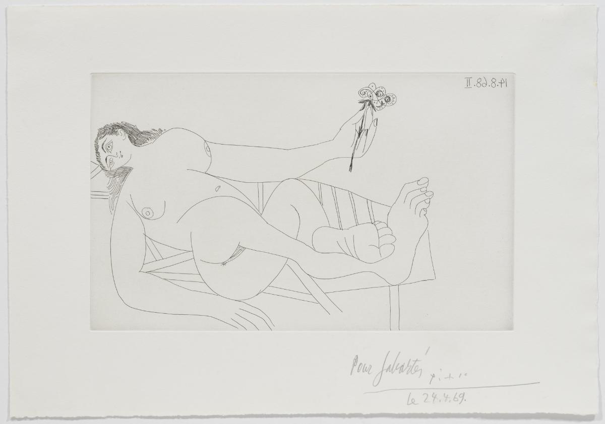Aiguafort sobre coure; estampat sobre paper vitel·la Rives (prova Sabartés)