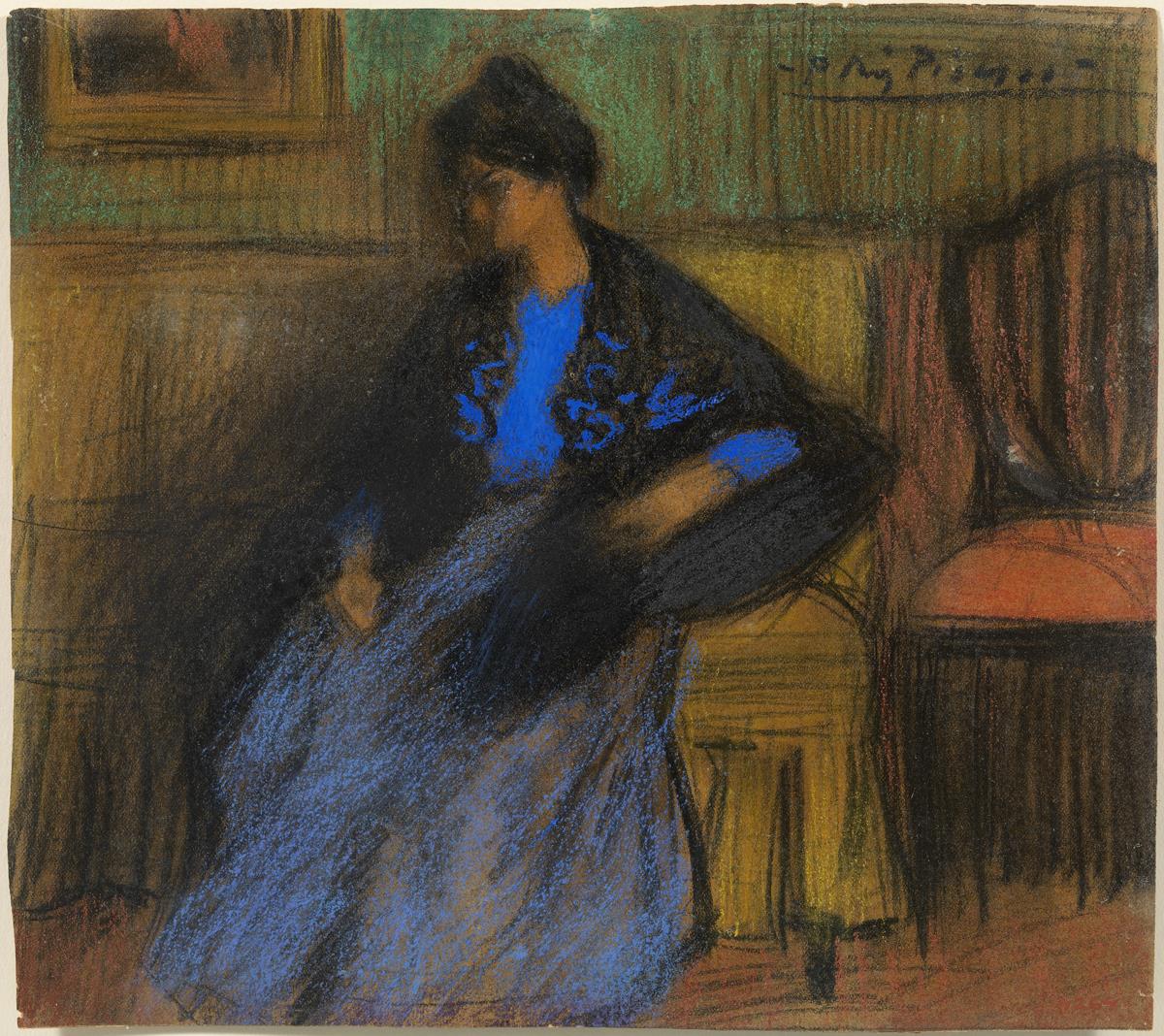 Dona amb xal, asseguda