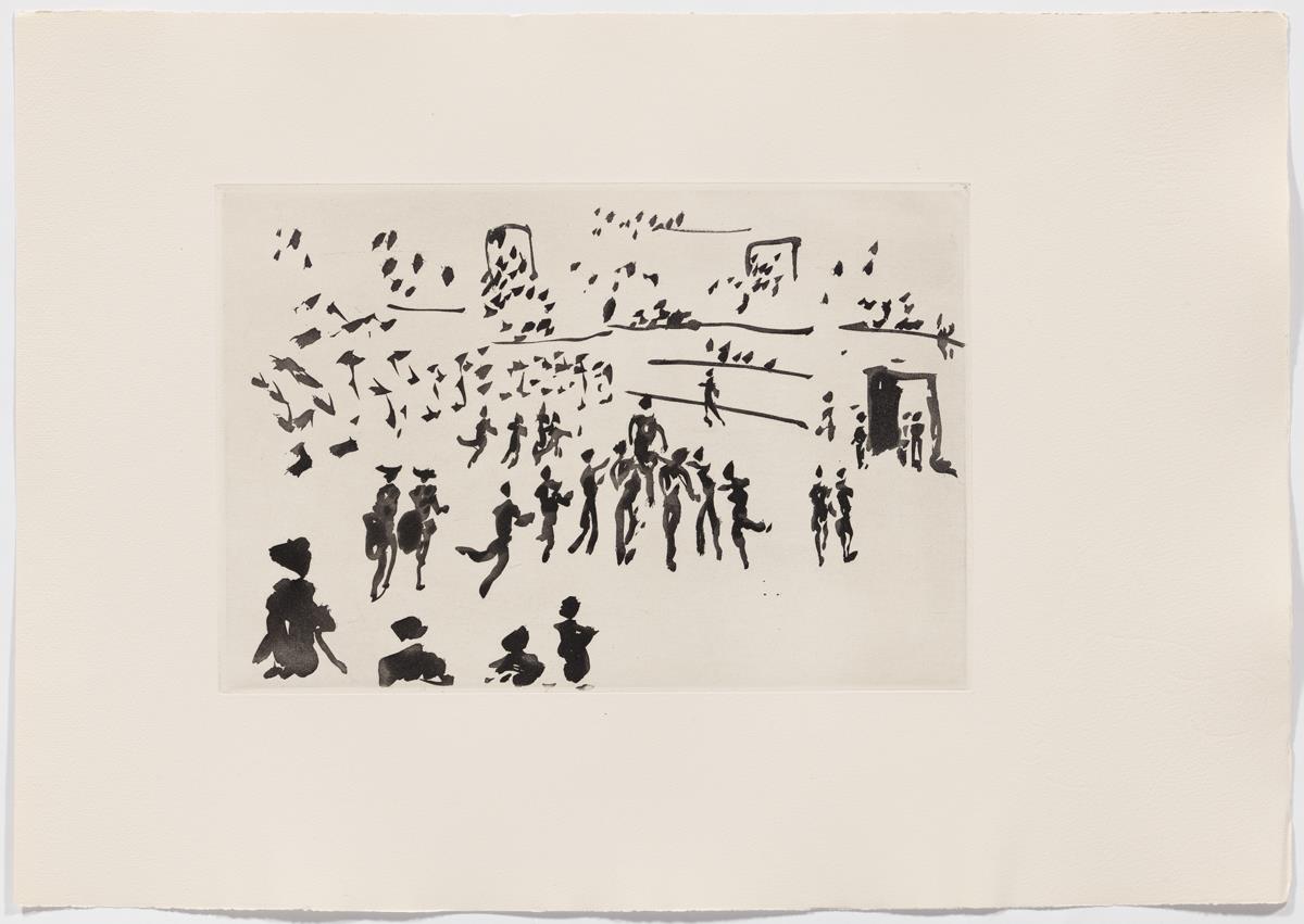 Aiguatinta al sucre amb mossegada a la mà sobre coure; estampat sobre paper vitel·la pur fil Guarro
