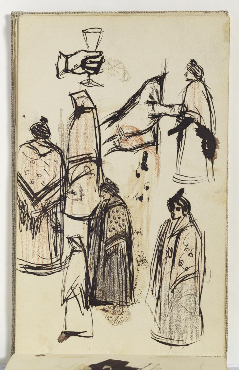 Tinta a ploma, mina sèpia i sanguina sobre paper