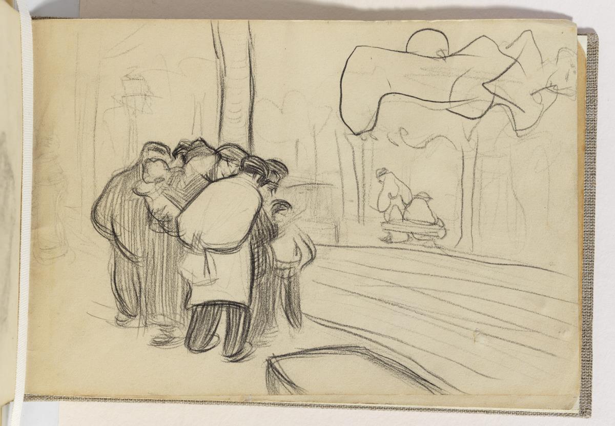 Enllaç cap a obra Home llegint amb curiosos, i estudi de figures Home llegint amb curiosos, i estudi de figures
