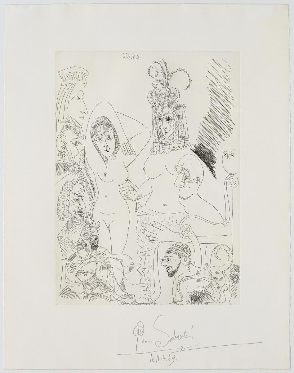 Aiguafort sobre coure; estampat sobre paper vitel·la Rives (prova Sabartés)