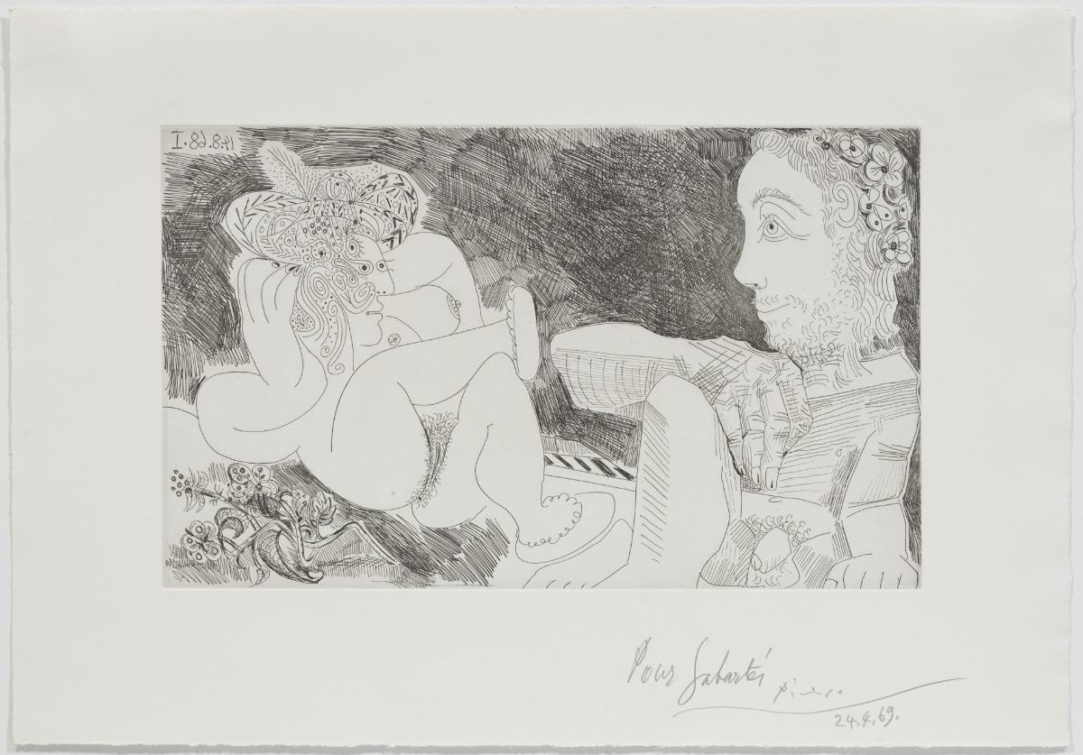 Aiguafort sobre coure; estampat sobre paper vitel·la Rives (prova Sabartés)
