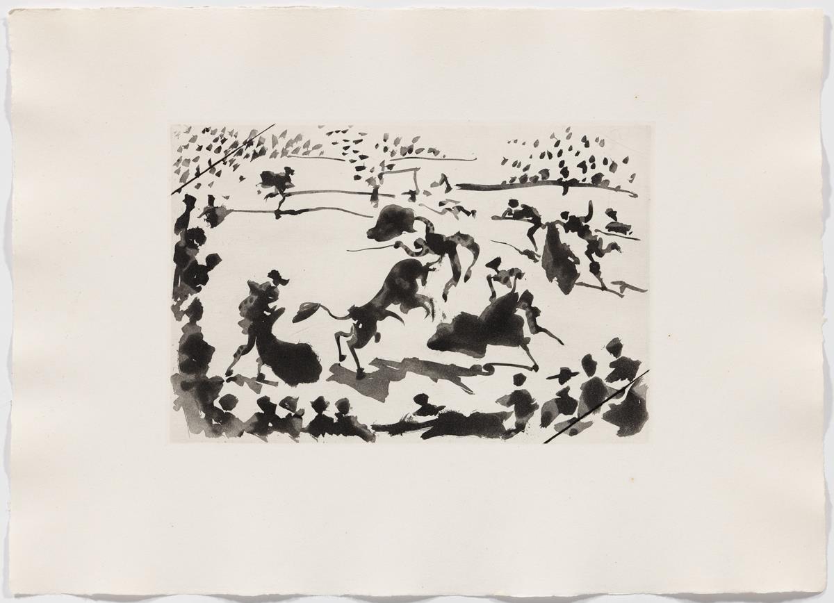 "La cogida" "La cogida" 1957 "La cogida" Autor Pablo Picasso Títol "La cogida" Lloc d'execució Canes Data 1957 Tècnica Aiguatinta al sucre amb mossegada a la mà sobre coure; estampat sobre paper vitel·la pur fil Guarro (prova de planxa anul·lada) Dimensions 19.5 cm x 29 cm Número de registre MPB 114.009.100 Necessites una reproducció d'aquesta obra? Tota documentació és per definició un treball en curs. Si tens informació addicional sobre aquest registre o hi detectes cap error, envia'ns els teus comentaris. Col·leccions Obra gràfica Obres de La col·lecció relacionades Enllaç cap a obra "La cogida" "La cogida" Enllaç cap a obra "La cogida" "La cogida" Enllaç cap a obra "La cogida" "La cogida" Enllaç cap a obra "La cogida" "La cogida" 1957 Enllaç cap a obra "La cogida" "La cogida" 1957 Enllaç cap a obra "La cogida" "La cogida" 1957 Enllaç cap a obra "La cogida" "La cogida" 1957 Enllaç cap a obra La Tauromaquia o arte de torear La Tauromaquia o arte de torear 1959