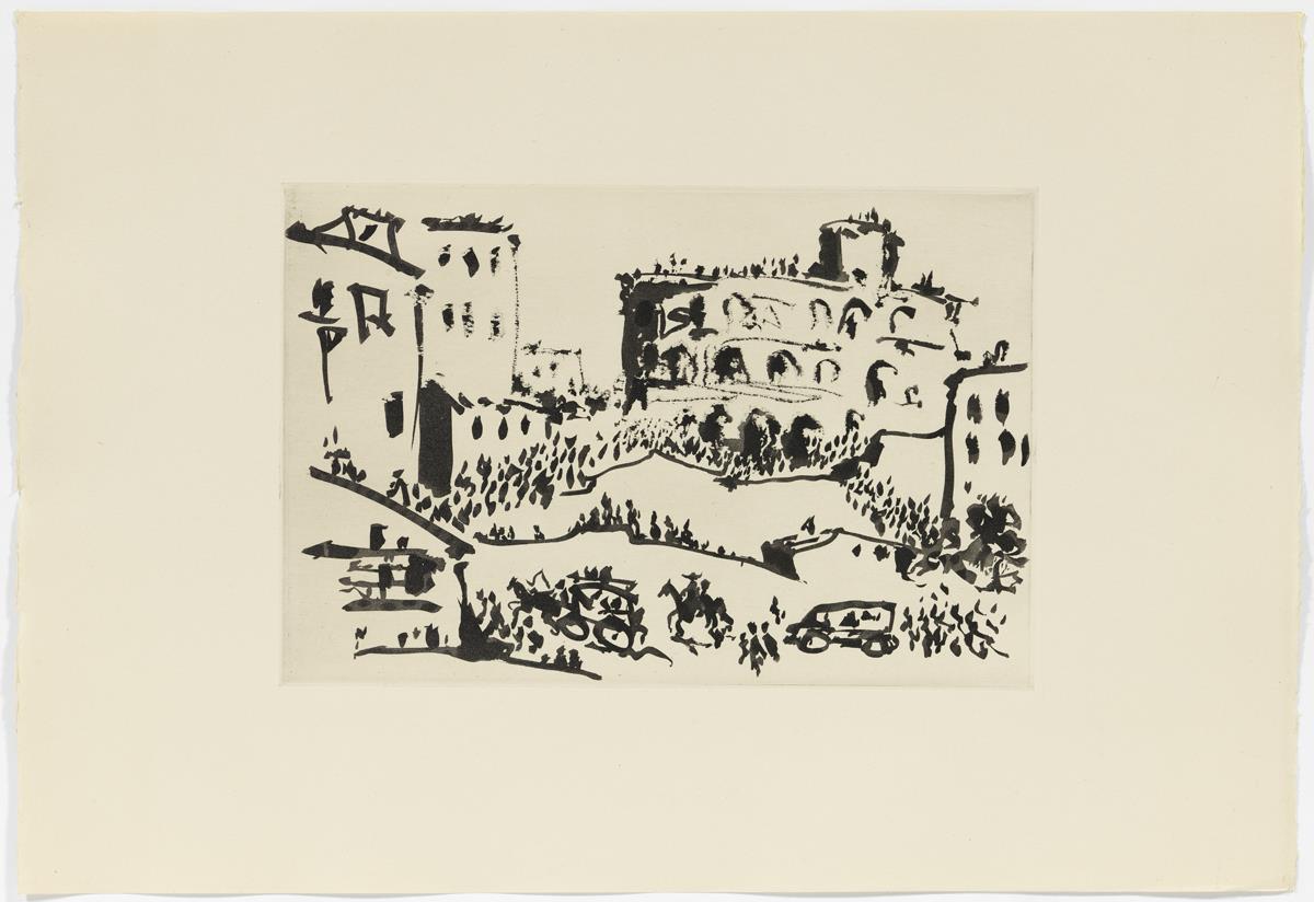 Aiguatinta al sucre amb mossegada a la mà sobre coure; estampat sobre paper japó antic