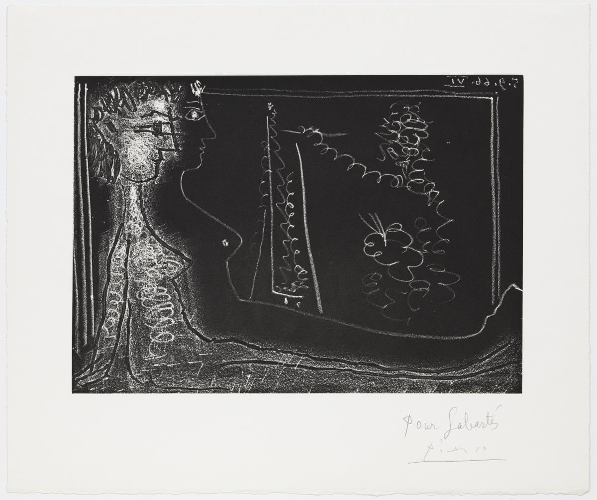 Aiguatinta (reserves al llapis litogràfic) i aiguafort sobre coure; estampat sobre paper vitel·la Rives (prova Sabartés)