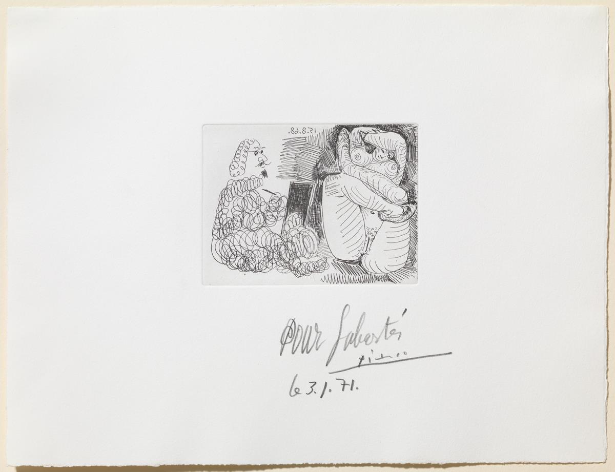 Aiguafort sobre coure; estampat sobre paper vitel·la Rives (prova Sabartés)