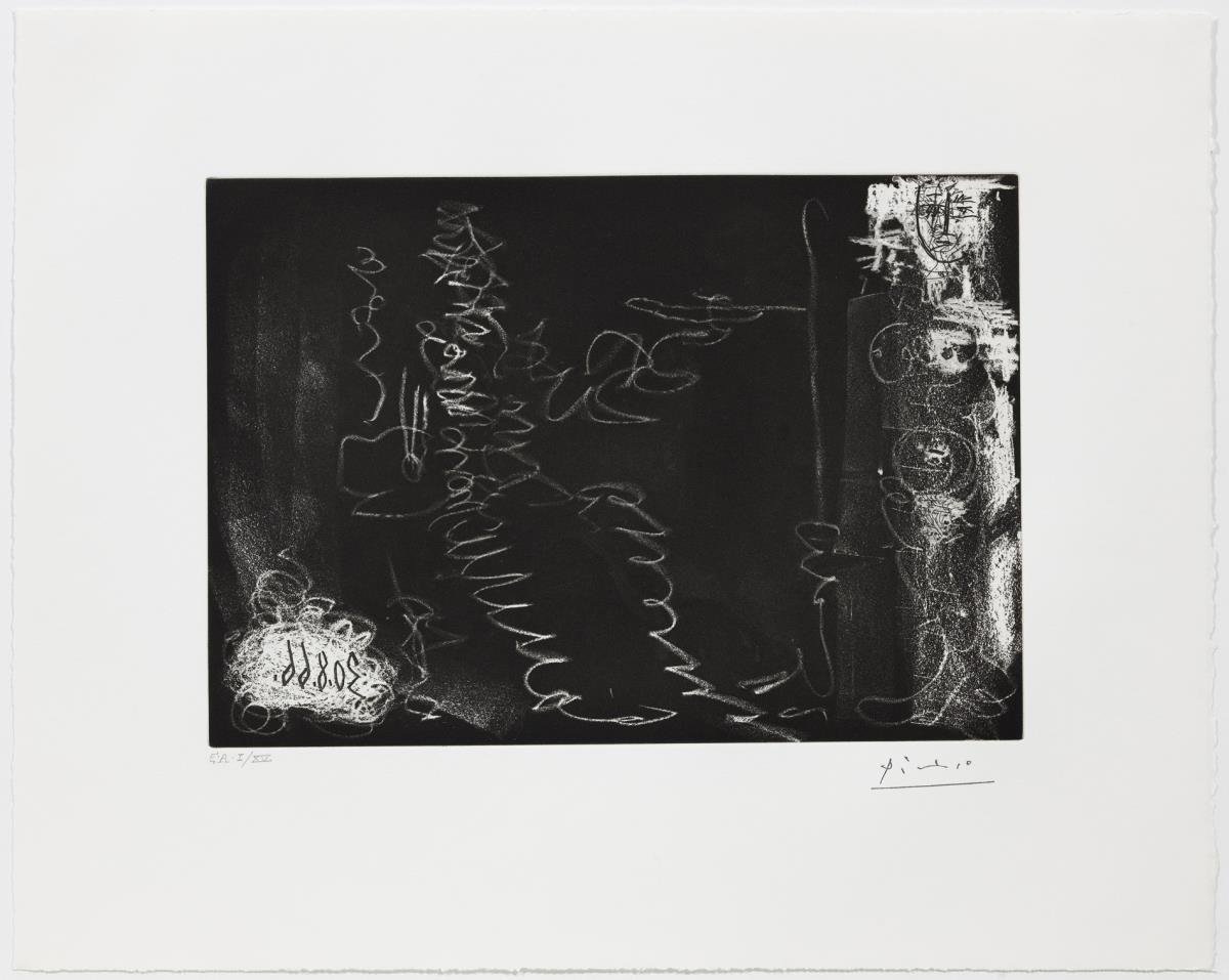 Aiguatinta (reserves al llapis litogràfic en el granejat) i aiguafort sobre coure; estampat sobre paper vitel·la Rives (prova d'artista numerada)