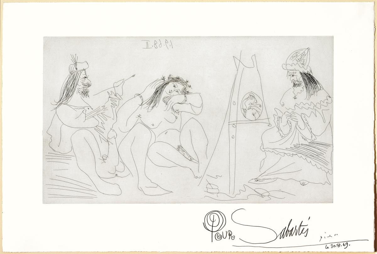 Aiguafort sobre coure; estampat sobre paper vitel·la Rives (prova Sabartés)