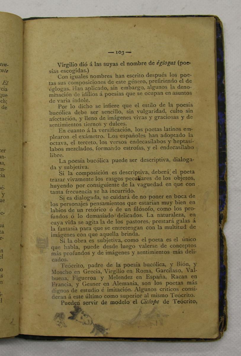 "Retórica y poética", pàg. 103 "Retórica y poética", pàg. 103 1894 "Retórica y poética", pàg. 103 Autor Pablo Picasso Títol "Retórica y poética", pàg. 103 Lloc d'execució La Corunya Data 1894 Tècnica Llapis grafit sobre paper Dimensions 20 cm x 12.2 cm Número de registre MPB 110.927.p.103 Necessites una reproducció d'aquesta obra? Tota documentació és per definició un treball en curs. Si tens informació addicional sobre aquest registre o hi detectes cap error, envia'ns els teus comentaris. Col·leccions Dibuix Obres de La col·lecció relacionades Enllaç cap a obra Retórica y poética Retórica y poética