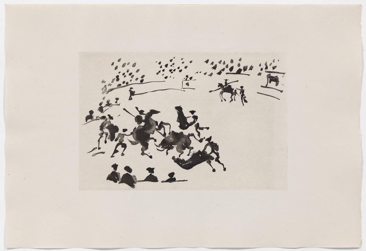 "Suerte de varas" "Suerte de varas" 1957 "Suerte de varas" Autor Pablo Picasso Títol "Suerte de varas" Lloc d'execució Canes Data 1957 Tècnica Aiguatinta al sucre amb mossegada a la mà sobre coure; estampat sobre paper de Xina Dimensions 19.9 cm x 29.9 cm Número de registre MPB 114.009.38 Necessites una reproducció d'aquesta obra? Tota documentació és per definició un treball en curs. Si tens informació addicional sobre aquest registre o hi detectes cap error, envia'ns els teus comentaris. Col·leccions Obra gràfica Obres de La col·lecció relacionades Enllaç cap a obra "Suerte de varas" "Suerte de varas" Enllaç cap a obra "Suerte de varas" "Suerte de varas" Enllaç cap a obra "Suerte de varas" "Suerte de varas" Enllaç cap a obra "Suerte de varas" "Suerte de varas" 1957 Enllaç cap a obra "Suerte de varas" "Suerte de varas" 1957 Enllaç cap a obra "Suerte de varas" "Suerte de varas" 1957 Enllaç cap a obra La Tauromaquia o arte de torear La Tauromaquia o arte de torear 1959