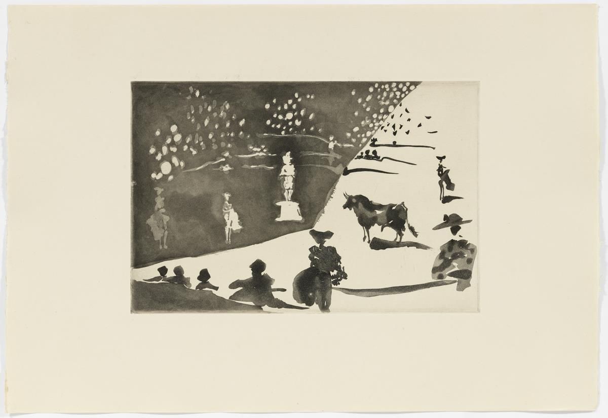 Aiguatinta al sucre amb reserves al vernís i mossegada a la mà sobre coure; estampat sobre paper japó antic (II estat i definitiu)