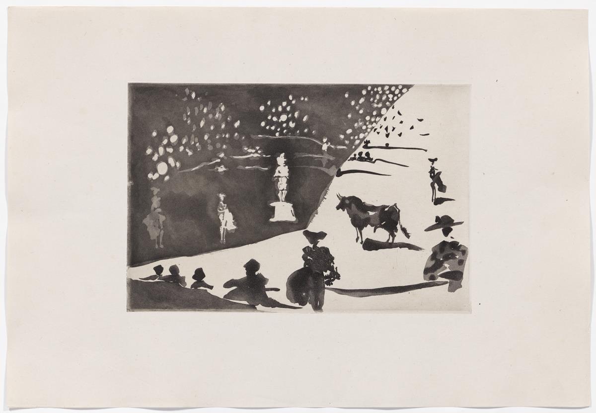 Aiguatinta al sucre amb reserves al vernís i mossegada a la mà sobre coure; estampat sobre paper de Xina (II estat i definitiu)