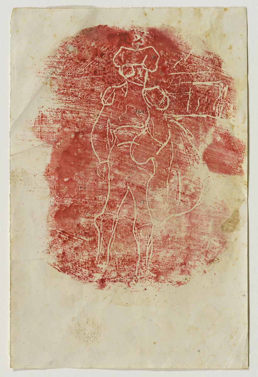 Gravat sobre fusta (probablement pirogravat sobre el fons d'una enciamera de fusta d'olivera); estampat sobre paper ordinari