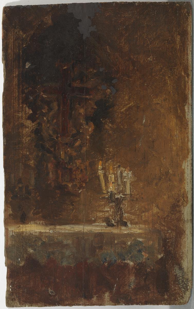 Altar Altar Altar Author Pablo Picasso Título Altar Execution place Barcelona Medium Oil on wood Dimensions 15.5 cm x 9.8 cm Acquisition data Gift of Pablo Picasso, 1970 Inventory number MPB 110.129 ¿Necesitas una reproducción de esta obra? The entire documentation process is, by definition, a work in progress. If you have additional information on this register or spot any errors, please send us your comments. Collections Painting Related artworks of The Collection Enllaç cap a obra First Communion First Communion Enllaç cap a obra Sketch for "First Communion" and Other Sketches Sketch for "First Communion" and Other Sketches
