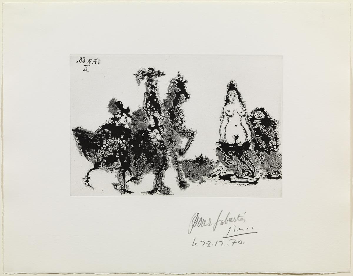 Sugar-lift aquatint on greased copper; printed on Rives vellum paper (Sabartés proof)