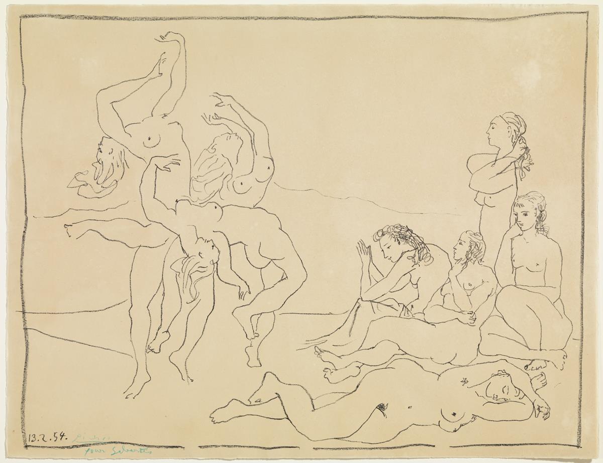 Lithograph. Lithographic crayon on transfer paper transferred to stone; printed on Arches vellum paper (Sabartés proof)