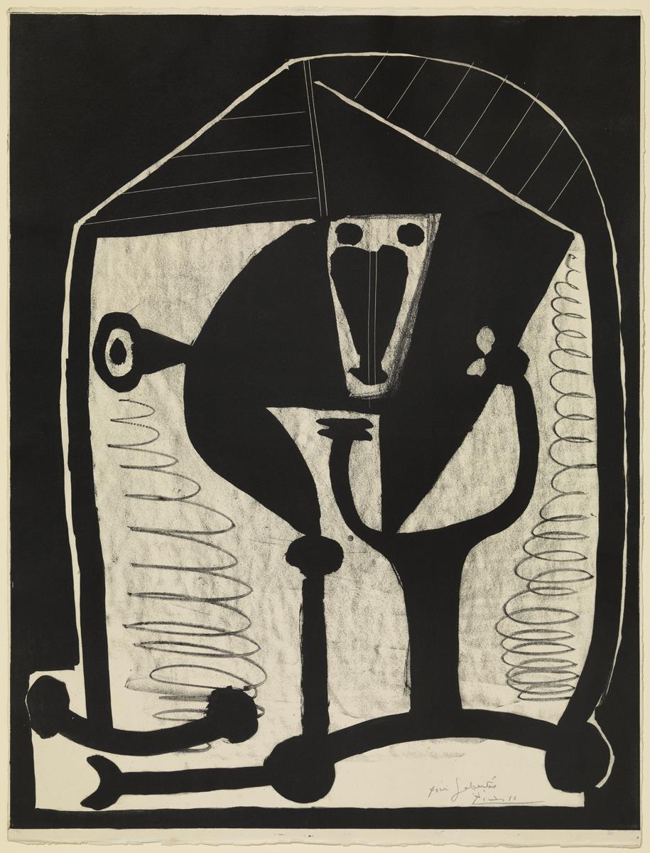 Lithograph. Lithographic ink, lithographic crayon, frottage and scraper on on zinc; printed on Arches vellum paper (Sabartés proof)