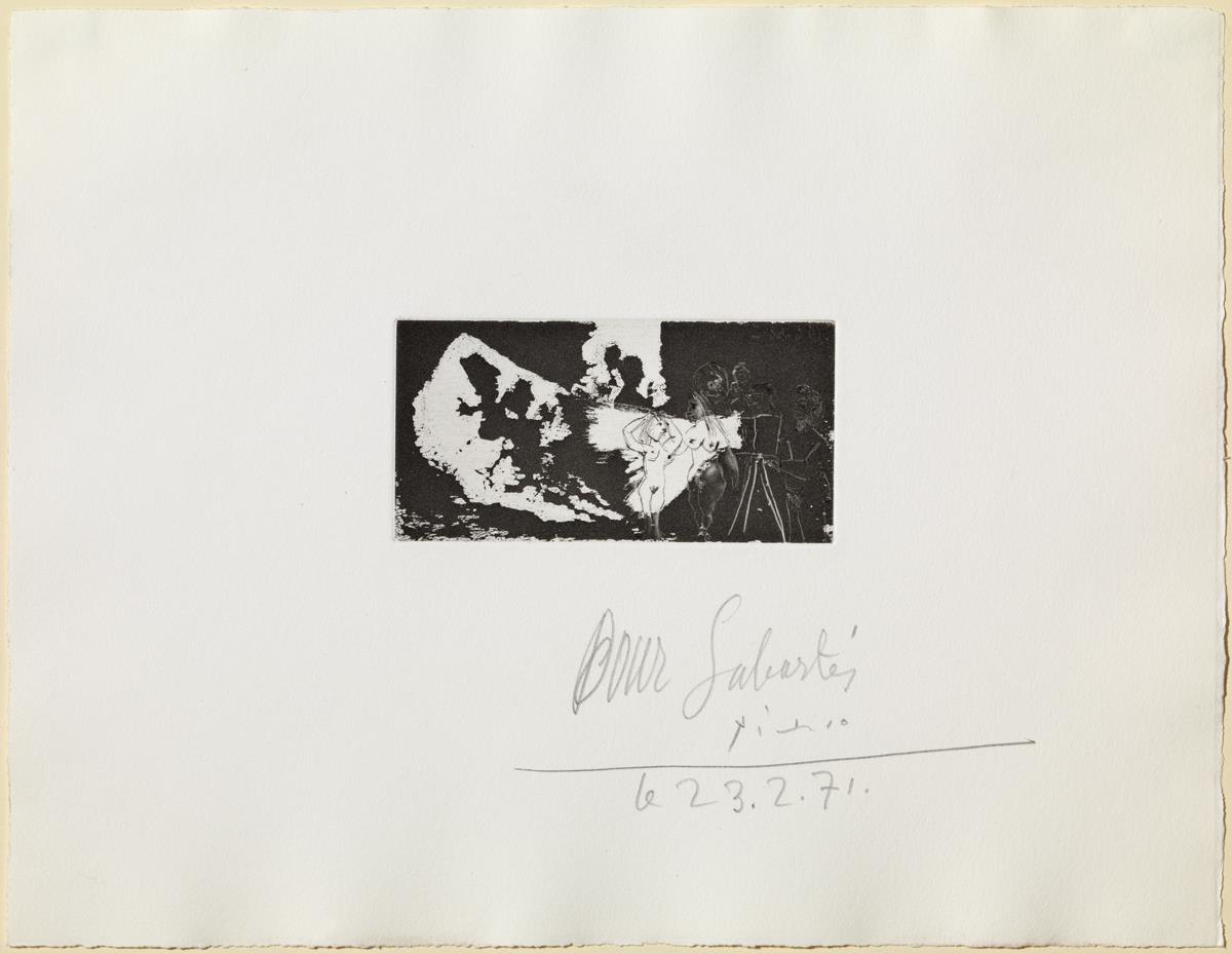 Aquatint, drypoint and scraper on copper; printed on Rives vellum paper (Sabartés proof, II and final state)