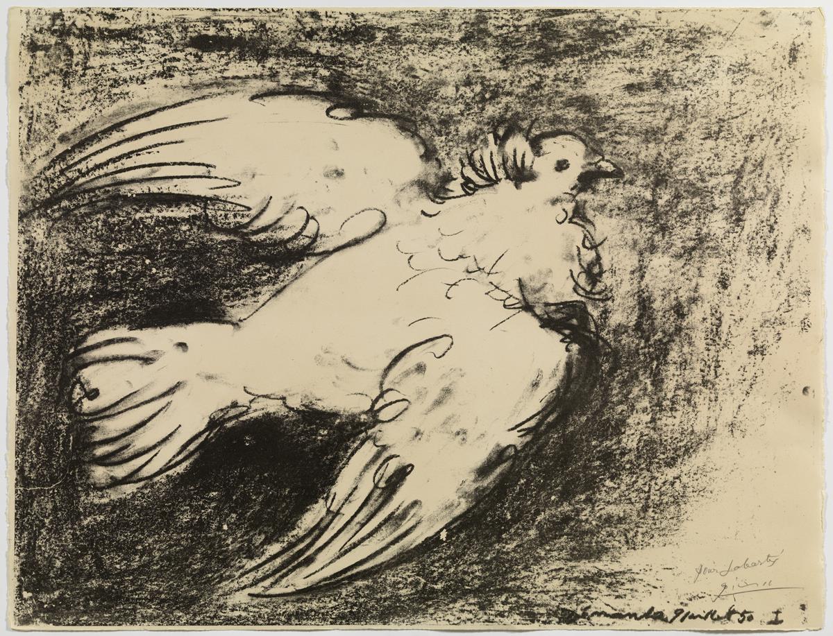 Lithograph. Lithotint, lithographic crayon and gouache on transfer paper transferred to stone; printed on Arches vellum paper (Sabartés proof)