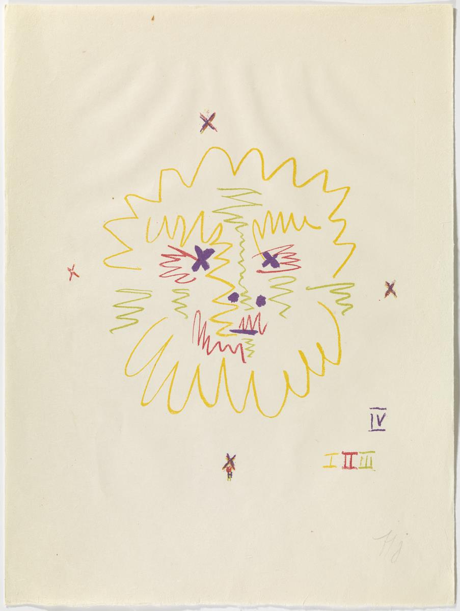 Lithograph in four colours. Lithographic crayon on transfer paper transferred to stone; printed on Japanese Hodomura paper (Sabartés proof)