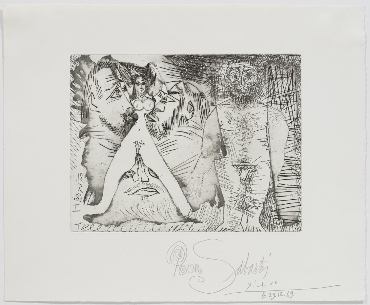 Etching, drypoint, scraper and burin on copper; printed on Rives vellum paper (Sabartés proof, III and final state)