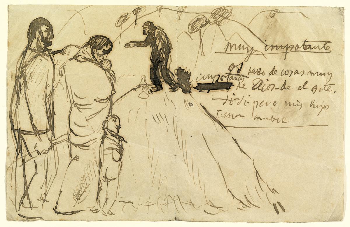 Hunger Hunger Hunger Author Pablo Picasso Título Hunger Execution place Barcelona Medium Pen and ink on paper Dimensions 13.5 cm x 21.1 cm Acquisition data Gift of Pablo Picasso, 1970 Inventory number MPB 110.472 ¿Necesitas una reproducción de esta obra? The entire documentation process is, by definition, a work in progress. If you have additional information on this register or spot any errors, please send us your comments. Collections Drawing Exhibitions 2021-2022- "Gaudí". Museu Nacional d'Art de Catalunya (MNAC), Barcelona (Espanya) 2020- "Picasso poète". Musée national Picasso-Paris, París (França) 2019-2020- "Picasso poeta". Museu Picasso, Barcelona, Barcelona (Espanya) 2018- "La cuina de Picasso". Museu Picasso, Barcelona, Barcelona (Espanya) 2002-2003- "Universo Gaudí". Museo Nacional Centro de Arte Reina Sofía (MNCARS), Madrid (Espanya) 2002- "Univers Gaudí". Centre de Cultura Contemporània de Barcelona (CCCB), Barcelona (Espanya) Related exhibitions Enllaç cap a exposició Picasso's Kitchen Fri, 25/05/2018 - 12:00 - Sun, 30/09/2018 - 12:00 Picasso's Kitchen Enllaç cap a exposició Picasso Poet Fri, 08/11/2019 - 12:00 - Sun, 01/03/2020 - 12:00 Picasso Poet