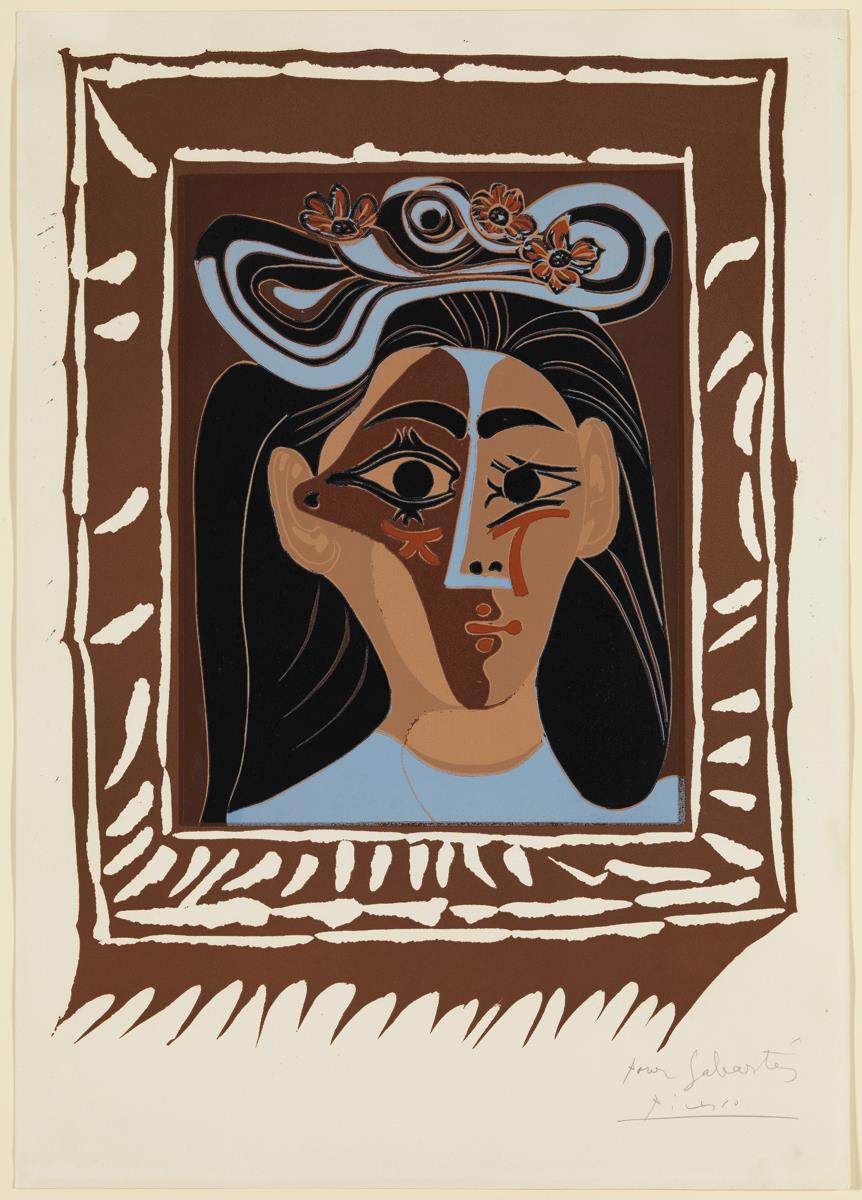 Etched with a gouge on two linoleums; printed in seven colours and eight coats, on Arches vellum paper (Sabartés proof, VI and final state on main plate)