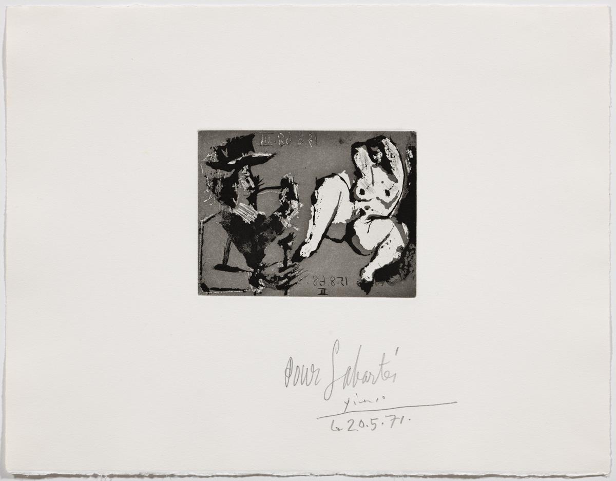 Sugar-lift aquatint, drypoint and scraper on copper; printed on Rives vellum paper (Sabartés proof, II and final state)