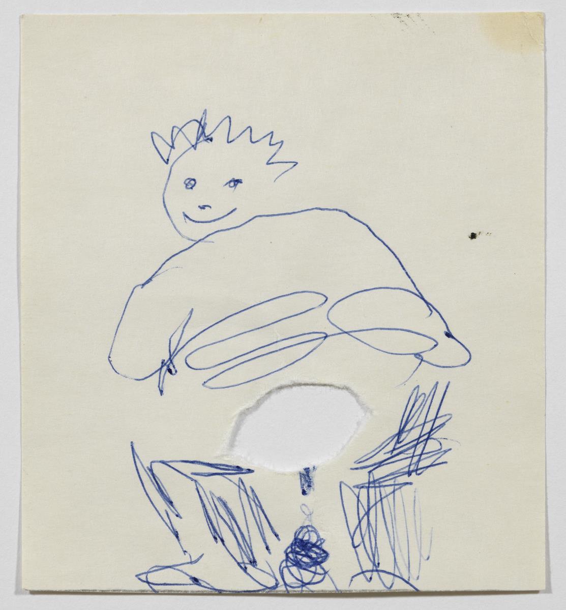 Blue ballpoint pen on cut-out paper
