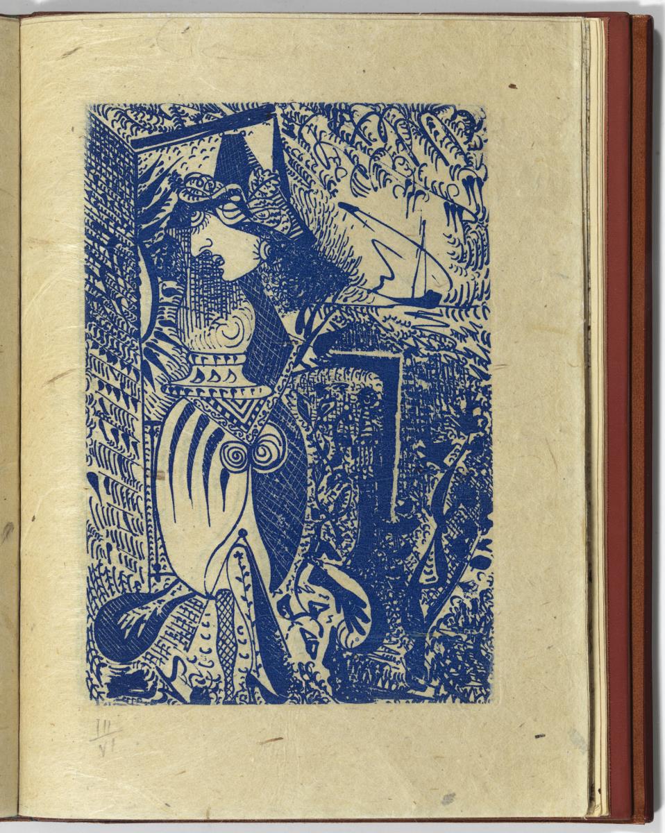 Sugar-lift aquatint and drypoint (on the right side of the dress) on copper; printed in blue ink on Manufactures Impériales Japanese ancient paper (II and final state)
