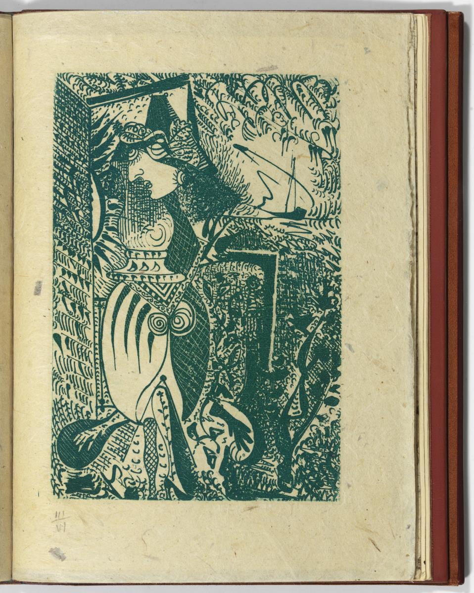 Sugar-lift aquatint and drypoint (on the right side of the dress) on copper; printed in green ink on Manufactures Impériales Japanese ancient paper (II and final state)