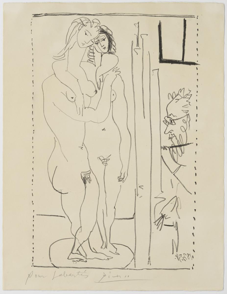 Lithograph. Lithographic crayon on transfer paper transferred to stone; printed on Arches vellum paper (Sabartés proof)