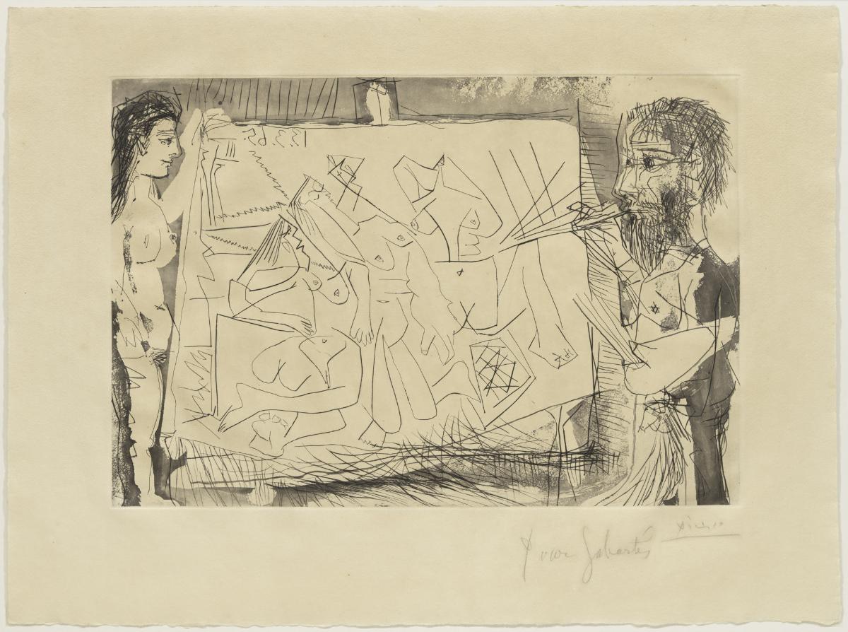 Aquatint, etching and drypoint on copper; printed on Auvergne Richard de Bas vellum paper (Sabarté proof, II and final state)