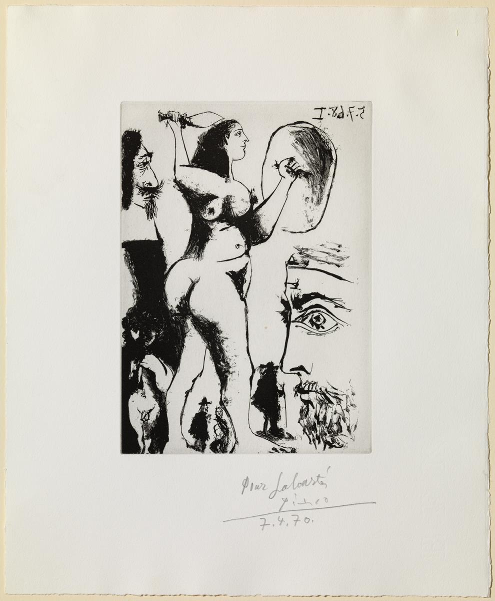 Sugar-lift aquatint on greased copper; printed on Rives vellum paper (Sabartés proof)