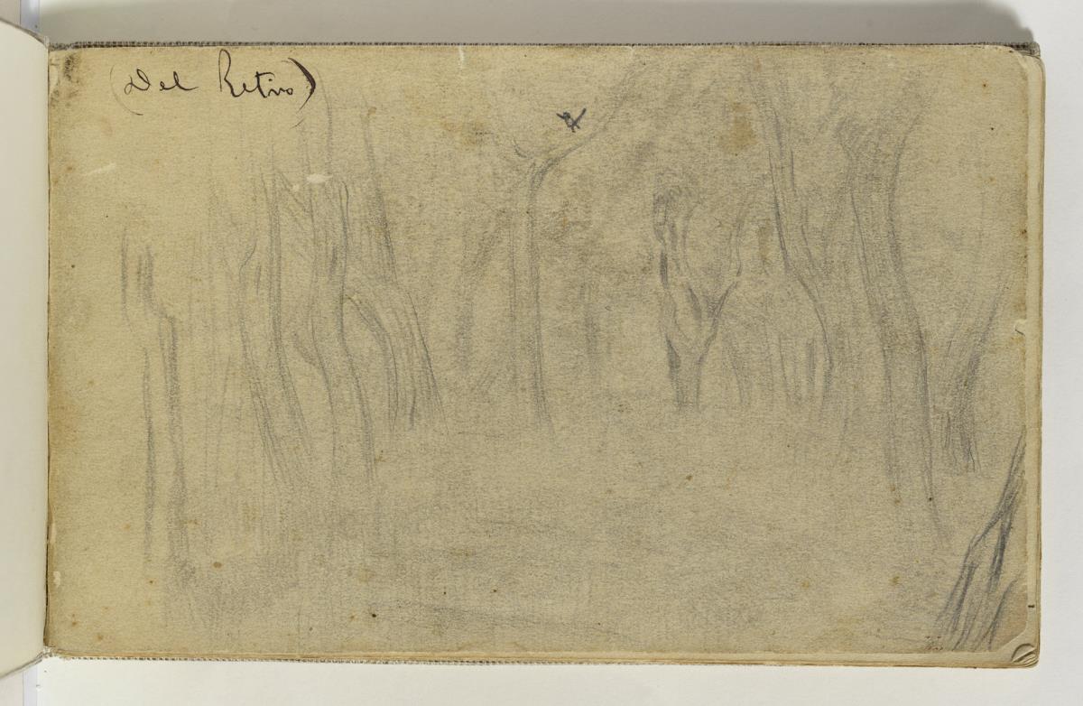 Park of El Retiro Park of El Retiro 1898 Park of El Retiro Author Pablo Picasso Título Park of El Retiro Execution place Madrid Date 1898 Medium Graphite pencil on paper Dimensions 12 cm x 19.5 cm Acquisition data Gift of Pablo Picasso, 1970 Inventory number MPB 111.513 ¿Necesitas una reproducción de esta obra? The entire documentation process is, by definition, a work in progress. If you have additional information on this register or spot any errors, please send us your comments. Collections Drawing Related artworks of The Collection Enllaç cap a obra Madrid Sketchbook, 1897-1898 Madrid Sketchbook, 1897-1898 1898