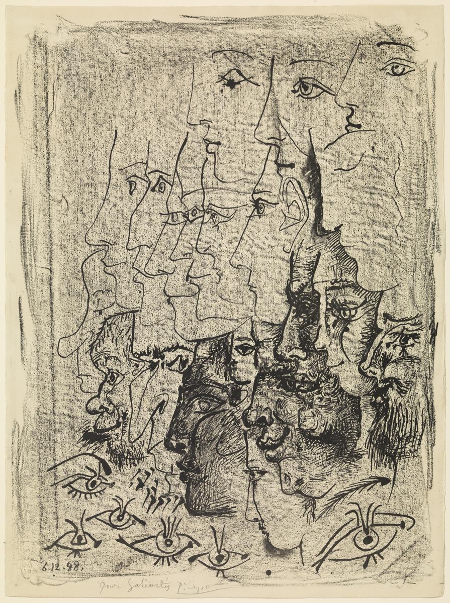 Lithograph. Pen, brush, lithographic crayon and frottage on zinc; printed on Arches vellum paper (Sabartés proof)