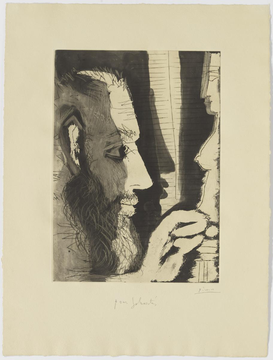 Aquatint, drypoint, scraper and burin on copper; printed on Rives vellum paper (Sabartés proof, III and final state)