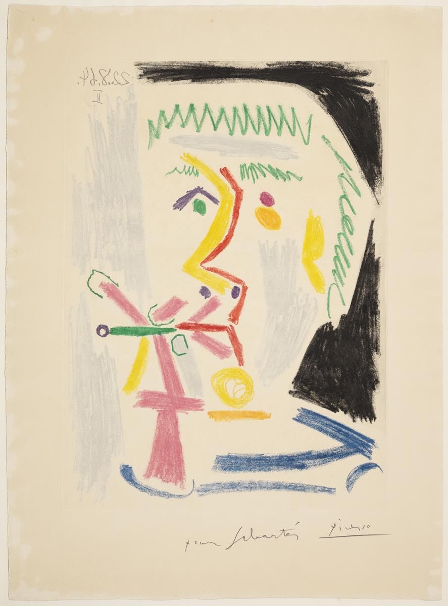 Soft varnish and inked in colours "à la poupée" on copper; printed on Auvergne Richard de Bas vellum paper (Sabartés proof)