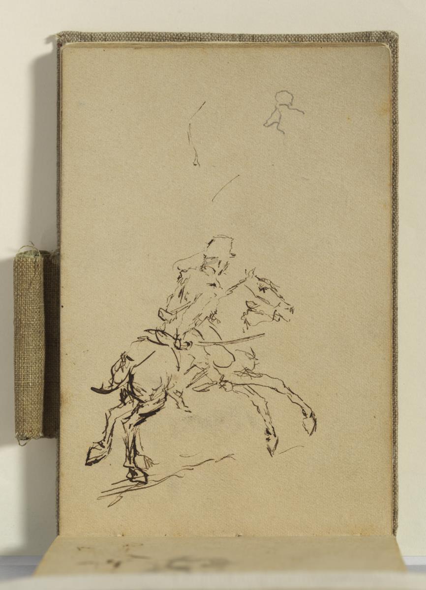 Soldier on Horseback Soldier on Horseback Soldier on Horseback Author Pablo Picasso Título Soldier on Horseback Execution place Barcelona Medium Pen and ink, and graphite pencil on paper Dimensions 12.2 cm x 8.1 cm Acquisition data Gift of Pablo Picasso, 1970 Inventory number MPB 111.144 ¿Necesitas una reproducción de esta obra? The entire documentation process is, by definition, a work in progress. If you have additional information on this register or spot any errors, please send us your comments. Collections Drawing Related artworks of The Collection Enllaç cap a obra A Coruña, Málaga and Barcelona Sketchbook, 1895-1896 A Coruña, Málaga and Barcelona Sketchbook, 1895-1896 1896